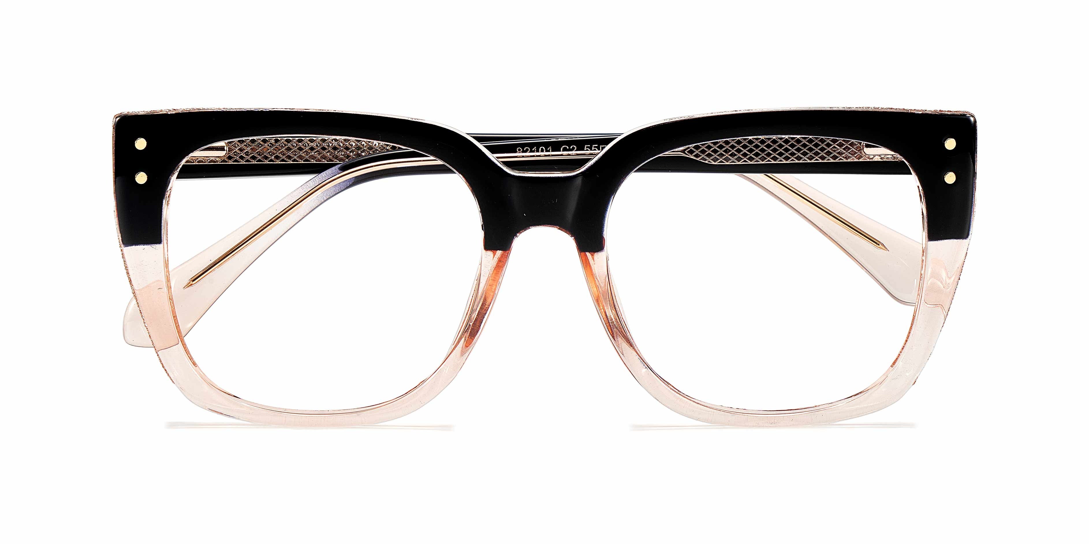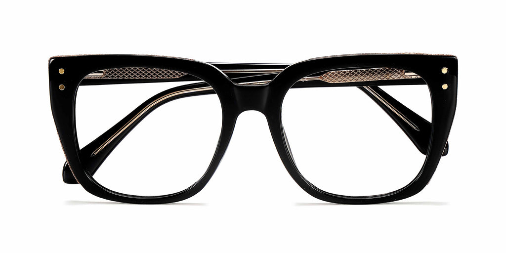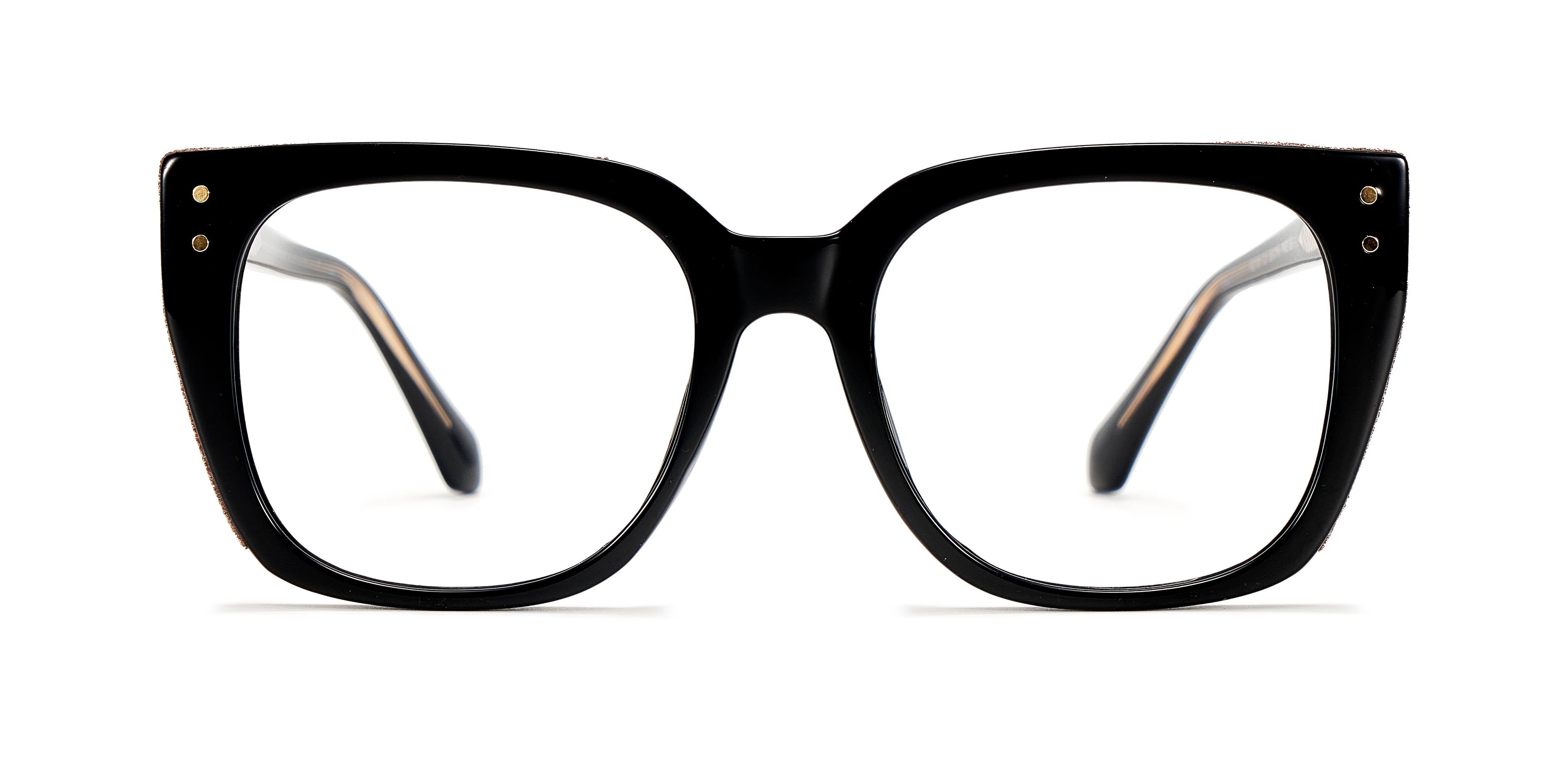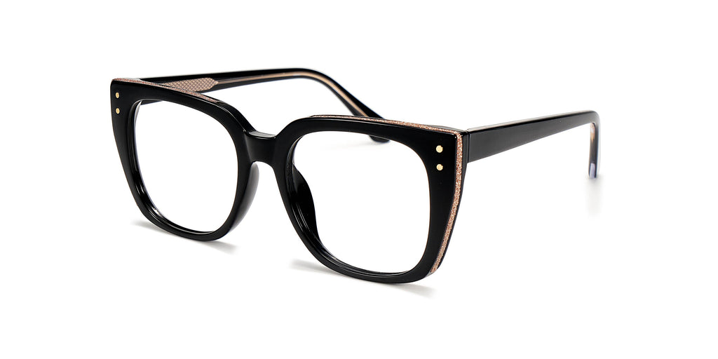 Elegant black-crystal square prescription eyeglasses for women, blending sophistication and style seamlessly.